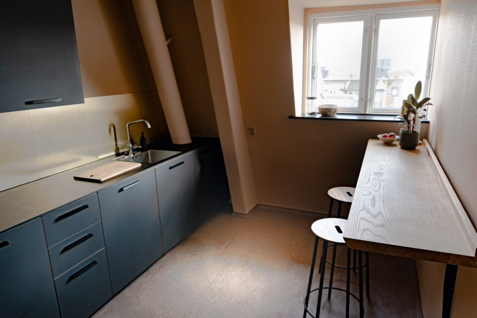 Vi bor højt over byen, så vi får en dejlig portion sollys og udsigt, og så er der et helt igennem skønt fællesskab på etagen. Det får fem stjerner af os!